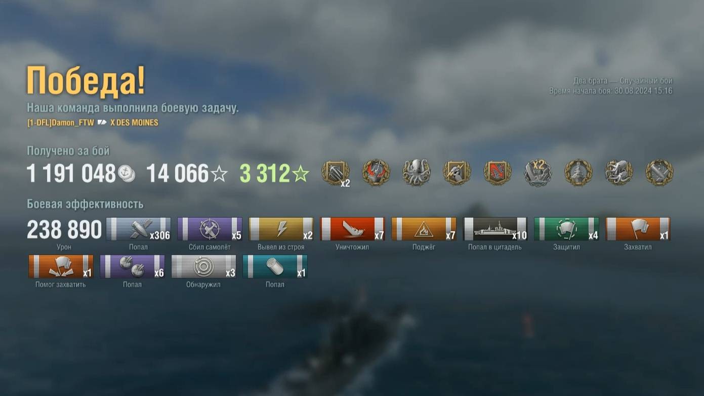 Крейсер Des Moines : +238к урона 7 фрагов на карте Два брата - World of Warships