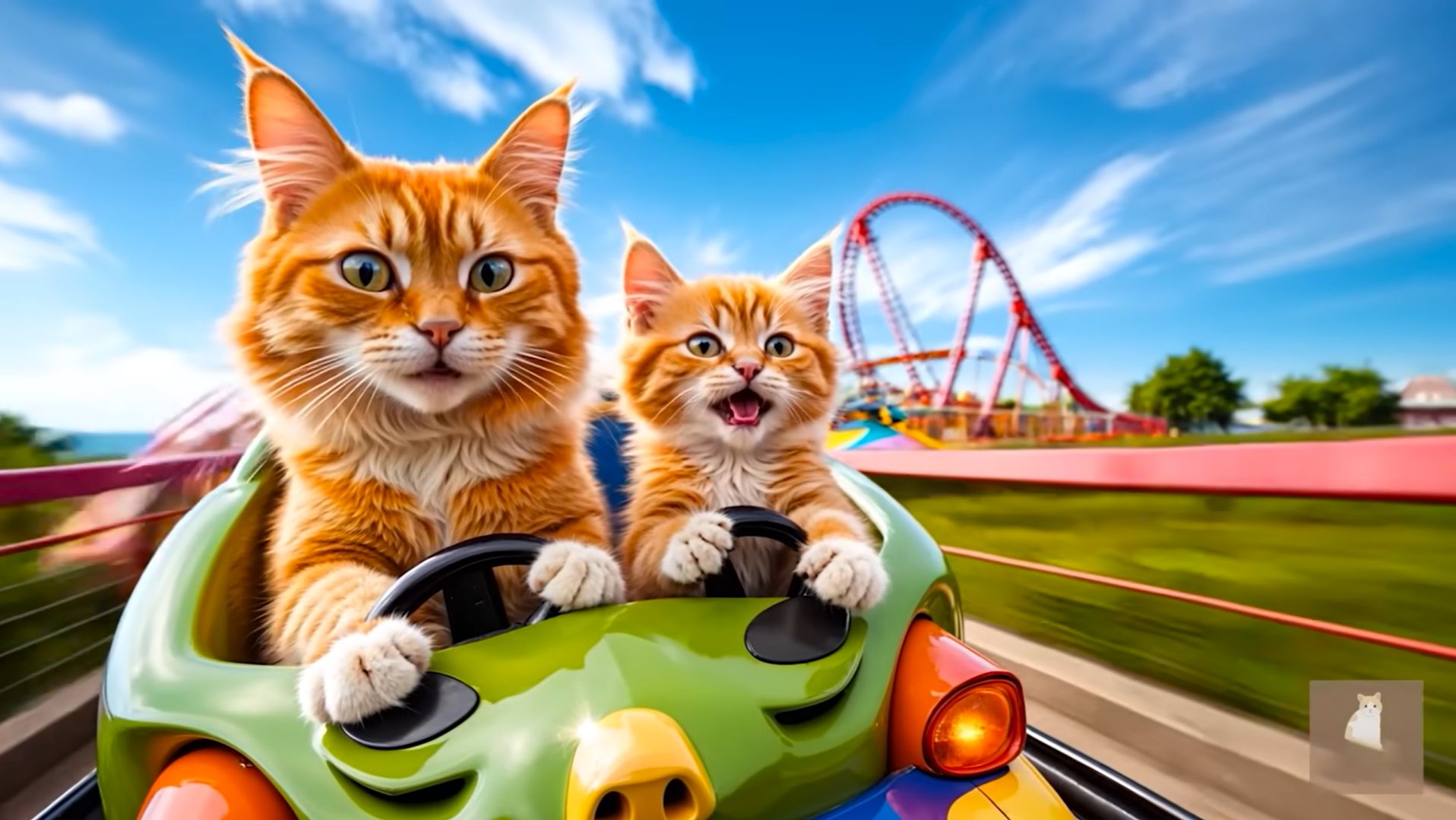 😹Мама кошечка со своим маленьким сыночком катаются на аттракционах🔥