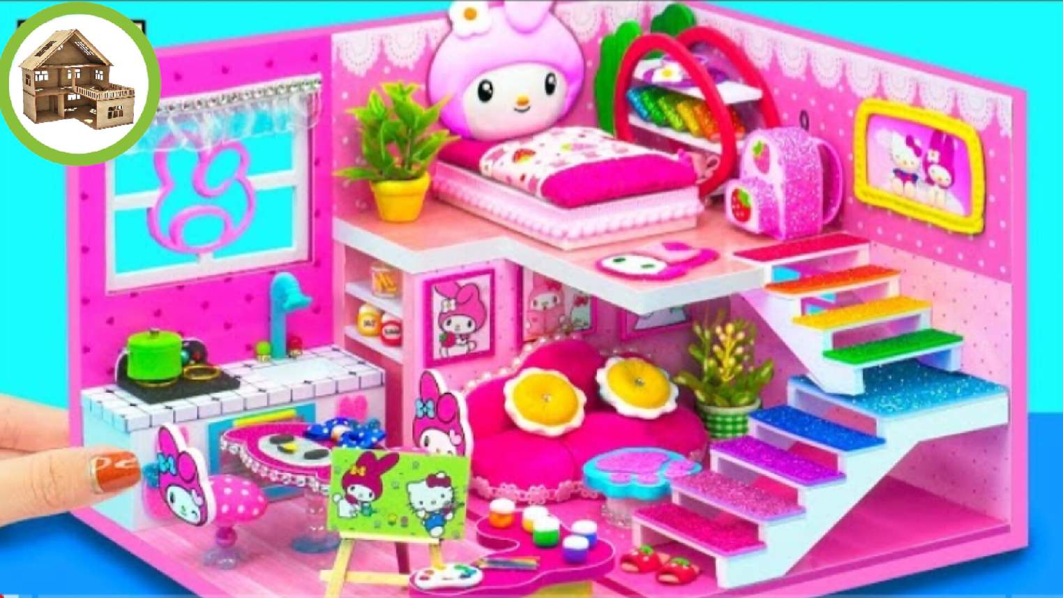 Милый миниатюрный мелодичный розовый домик для всей семьи из картона /215