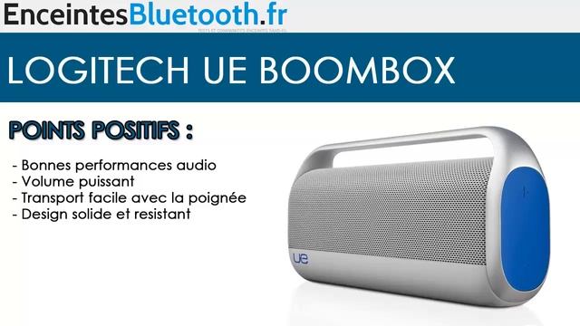 http://www.enceintesbluetooth.fr/test/logitech-ue-boombox/ Consultez le site complet de l'enceinte Bluetooth Logitech UE Boombox sur notre site. Points positifs : Performances sonores, design solide et solidaire, facile d'utilisation et possibilité de connecter plusieurs appareils. Points négatifs : Pas de housse de transport, pas d'indicateur de batterie, impossible de charger par USB. ------------------------------- Traduction de Review ------------------------------- Nous avons vu beaucoup d'écouteurs de Logitech depuis que la société a acheté Ultimate Ears il ya quelques années, et maintenant la marque UE est étendu dans un haut-parleur ligne. La Logitech UE Boombox ($ 249,99 directe), a un design minimaliste élégant, et des ruisseaux audio sans fil via Bluetooth. Il est également portable et packs tout un coup de poing à sa taille, avec une réponse nettement stimulé bas de gamme. À la baisse des volumes, la basse-lourdeur de la réponse en fréquence est tout à fait remarquable, mais à haut volume, c'est la ruine-il de l'UE Boombox fausse sur les pistes de basses profondes, qui ne devrait pas se produire dans cette gamme de prix. Pour la plupart des genres, cependant, l'UE Boombox offre sans fil de qualité, audio portable pour ceux qui aiment un peu plus basse dans leur mix. Conception La conception UE Boombox semble inspiré par une balle en argent, avec toutes les surfaces métalliques mat, côtés en caoutchouc, et lisse, bords arrondis sur son 6.5 par 15,2 de 3,1 pouces contour. Le panneau de droite abrite une surface bleue caoutchouté avec grande icônes plus et moins de volume, tandis que la gauche, qui est aussi bleu, abrite le bouton d'appairage Bluetooth, interrupteur d'alimentation, indicateur de batterie, et de 3,5 mm entrée auxiliaire. Derrière la grille d'enceinte, deux tweeters de 0,5 pouces, deux woofers de 3 pouces et quatre radiateurs passifs de 2,6 pouces offrent l'audio, avec les radiateurs de jouer un rôle clé dans la réponse en fréquence significativement basse-lourds. Une poignée pour faciliter le transport s'étend le long de la longueur du système 4,4-livre, et une batterie rechargeable est logée dans un compartiment le long du panneau de fond. Logitech estime vie de la batterie à environ six heures par charge. L'UE Boombox soutient le streaming audio à partir d'appareils Bluetooth A2DP. Le processus de jumelage avec un iPhone 4S était simple et rapide, et ré-appariement était tout aussi facile. Performance Audiophiles attendent une réponse en fréquence équilibrée voudront probablement chercher ailleurs, comme mentionné ci-dessus, la Logitech UE Boombox offre une expérience au sérieux bass-lourds. À volume modéré à fort, le système émet complet et puissant-de manière surprenante, étant donné sa taille relativement modeste. Il n'y a pas beaucoup de présence infra-basses ici, mais les bas et bas-médiums sont assez stimulé. Cet accent sur la bas de gamme dénoue au top volumes-sur les pistes avec des basses très profondes, comme le couteau "Silent Shout," l'UE Boombox déformée assez fortement. Les bonnes nouvelles sont cette distorsion ne se produit pas avec des pistes avec le contenu de basse plus modérée. Peu importe, la distorsion ne devrait pas vraiment entrer dans l'équation dans la gamme de 250 $ le prix, et il nous laisse demander s'il serait même un problème si la réponse des graves était juste un tantinet plus tempéré. Heureusement, la basse supplémentaire semble généralement plus puissant que boueux. Le bas de gamme ajoutée n'a pas faire des merveilles pour des titres comme John Adams "Les Chairman Dances», ce qui ne semble pas terrible sur l'UE Boombox, mais il a des moments de exagérations peu comique de la basse percussion profonde.