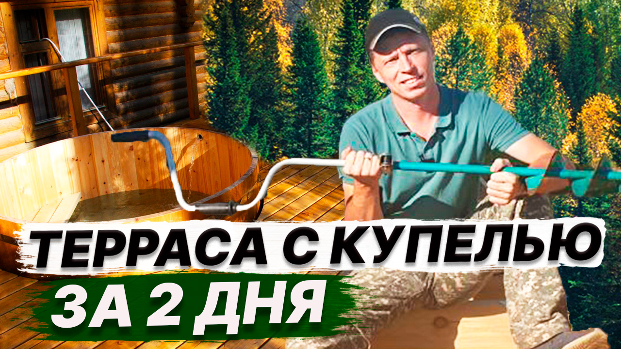 Строительство КРАСИВОЙ ТЕРРАСЫ подробно! Фундамент террасы бурил РЫБОЛОВНЫМ буром.