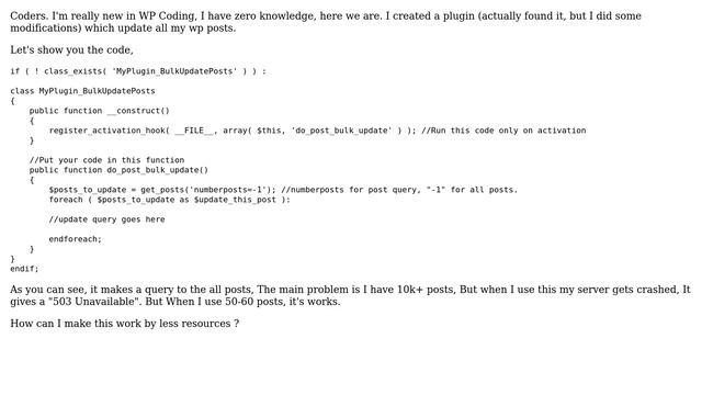 Wordpress: Bulk update wordpress posts Helpful? Please support me on Patreon: https://www.patreon.com/roelvandepaar With thanks & praise to God, and with thanks to the many people who have made this project possible! | Content (except music & images) licensed under CC BY-SA https://meta.stackexchange.com/help/licensing | Music: https://www.bensound.com/licensing | Images: https://stocksnap.io/license & others | With thanks to user Rarst (wordpress.stackexchange.com/users/847), user Picard (wordpress.stackexchange.com/users/118566), user Harry (wordpress.stackexchange.com/users/116204), and the Stack Exchange Network (wordpress.stackexchange.com/questions/266401). Trademarks are property of their respective owners. Disclaimer: All information is provided "AS IS" without warranty of any kind. You are responsible for your own actions. Please contact me if anything is amiss at Roel D.OT VandePaar A.T gmail.com