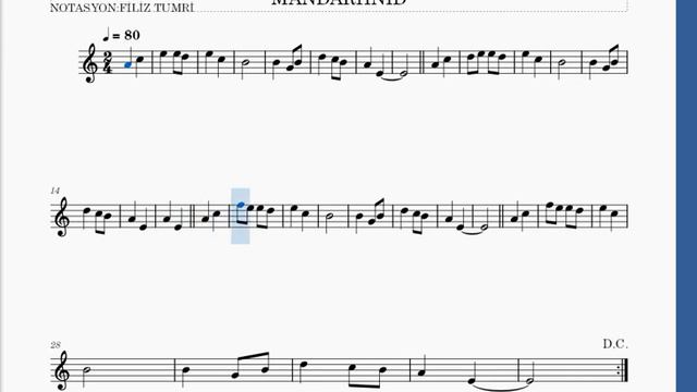 MANDALİNA BAHÇESİ -MANDARİİNİD- FLÜT NOTALARI