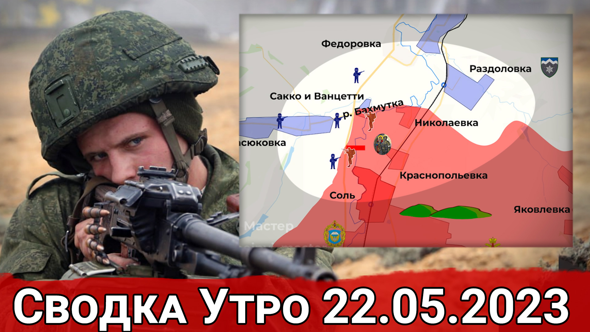 Друзья, поддержать наш проект вы можете, отправив денежный перевод на карту Сбербанка и Яндекс Кошелек: Карта Сбербанка -- 4276 1605 9355 4547 Яндекс Кошелек -- 410019779835638 Больше информации на нашем ТГ: https://t.me/oruzhejnyj_master На Красно-Лиманском направлении наблюдается обмен ударами с применением как артиллерии, так и гранатометов. В районе Краснопоповки, на административной границе, украинские группировки совершают обстрел из АГС-17 по российской пехоте. Мешают сконцентрировать силы. В кадре подбитая техника, которая была выведена из строя еще в апреле. В Кременских Лесах в районе Прилесного российские подразделения все также стремятся улучшить позиции вдоль реки Северский Донец. Активную помощь в продвижении оказывают “Кубанские казаки” специального отряда Барс - 16. Контрбатарейная борьба не останавливается ни на минуту. Помимо артиллерии, используются дроны-камикадзе. Восточнее Ямполовки беспилотником “Ланцет” поражена американская гаубица “М777”. На Артемовском направлении не останавливаются ожесточенные бои. Украинская сторона, после сдачи Артемовска, стала интенсивнее наносить артиллерийские удары по российским позициям. Тем самым показывает, как бы все еще впереди. На Северном фланге интенсивные боестолкновения наблюдаются в районе Сакко и Ванцетти. Западнее данного села российские подразделения активно обстреливают технику ВСУ. Стремятся не подпустить противника к пункту. Южнее соседствующей Васюковки российские силы продвинулись вперед, заняв опорник. Создана угроза на ВСУ, которые удерживают Васюковку. Украинские силы применяют артиллерию и дроны-камикадзе. В районе Берховского водохранилища упорные бои ведет двухсотая бригада Северного флота. Сдерживает натиск ВСУ, которые стремятся прорваться к Ягодному. Заснят момент поражения украинской техники. Противник на протяжении недели не может дальше продвинуться. Пока что не выдохся. В Артемовске 20 мая, в день освобождения Мариуполя, куратор ЧВК “Вагнер” Евгений Пригожин объявил о полном контроле города. Съемка произошла на участке железнодорожного вокзала. Позже добавил, что с 1-го июня Вагнер полностью покинет передовые позиции на переформирование, дооснащение и до обучение. Будут отсутствовать на фронте до 1 августа. Все же дал понять, что планы могут измениться. Вероятно, в случае критической ситуации на фронте. На Южном фланге не прекращаются тяжелые бои. Здесь ВСУ не может дальше продавить. Российская сторона уверенно отбивает атаки. На Дзержинском направлении в районе Майорска, судя по кадрам, противник смог незначительно продвинуться вперед. Артиллеристы бывшей Горловской бригады поражают позиции ВСУ, снижая военный потенциал ВСУ. На Авдеевском направлении Донецкие подразделения 1-го Армейского Корпуса, в ходе непрерывных тяжелых боев, выдавили противника севернее Красногоровки. Закрепились вдоль железнодорожных путей. Информацию о потери контроля участка подтверждает противник. Сейчас фланг Красногоровки обезопасен. То есть возобновилось давление на украинские позиции в районе Степового для последующего охвата Авдеевки.