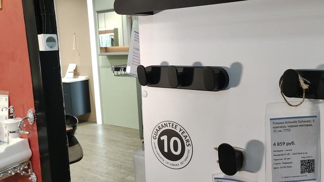 Планка Artwelle Schwarz 7735, 3 крючка, черная матовая, 18 см