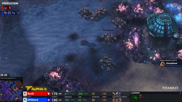 StarCraft 2 cast featuring DARK vs BYUN brought to you by Alpha X! Thank you for watching our videos! Alpha X is all about StarCraft 2. Support us via our Patreon (https://www.patreon.com/alphaxsc2) if you are a fan of our content, our live tournaments and our development of players! We run at least 3 events weekly featuring top level pros to enhance the scene. Additionally we are committed towards supporting and developing players to add to the StarCraft 2 professional player base - we hope to replicate the success we've had with players like Astrea and Zoun and support as many ambitious players as we can! #StarCraft2 #SC2 Tournament Page - https://liquipedia.net/starcraft2/ESL_Open_Cup_KR/91 Casted by 📣 TitanOnFire Website: https://www.alphax.gg/ Twitter: https://twitter.com/AlphaXsc2 Discord: https://discord.gg/yH2XWpx Twitch: https://www.twitch.tv/AlphaXsc2 AfreccaTV: http://play.afreecatv.com/alphaxsc2 Trovo: https://trovo.live/AlphaXsc2 StarCraft 2: Legacy of the Void is a real-time strategy game from Blizzard Entertainment. It is the third and final installment of the StarCraft 2 expansion trilogy.