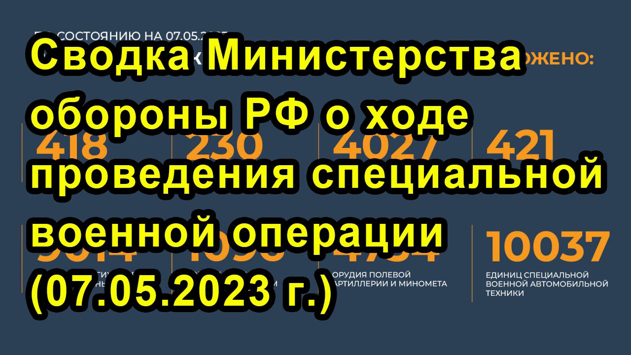Сводка Министерства обороны РФ о ходе проведения специальной военной операции (07.05.2023 г.)