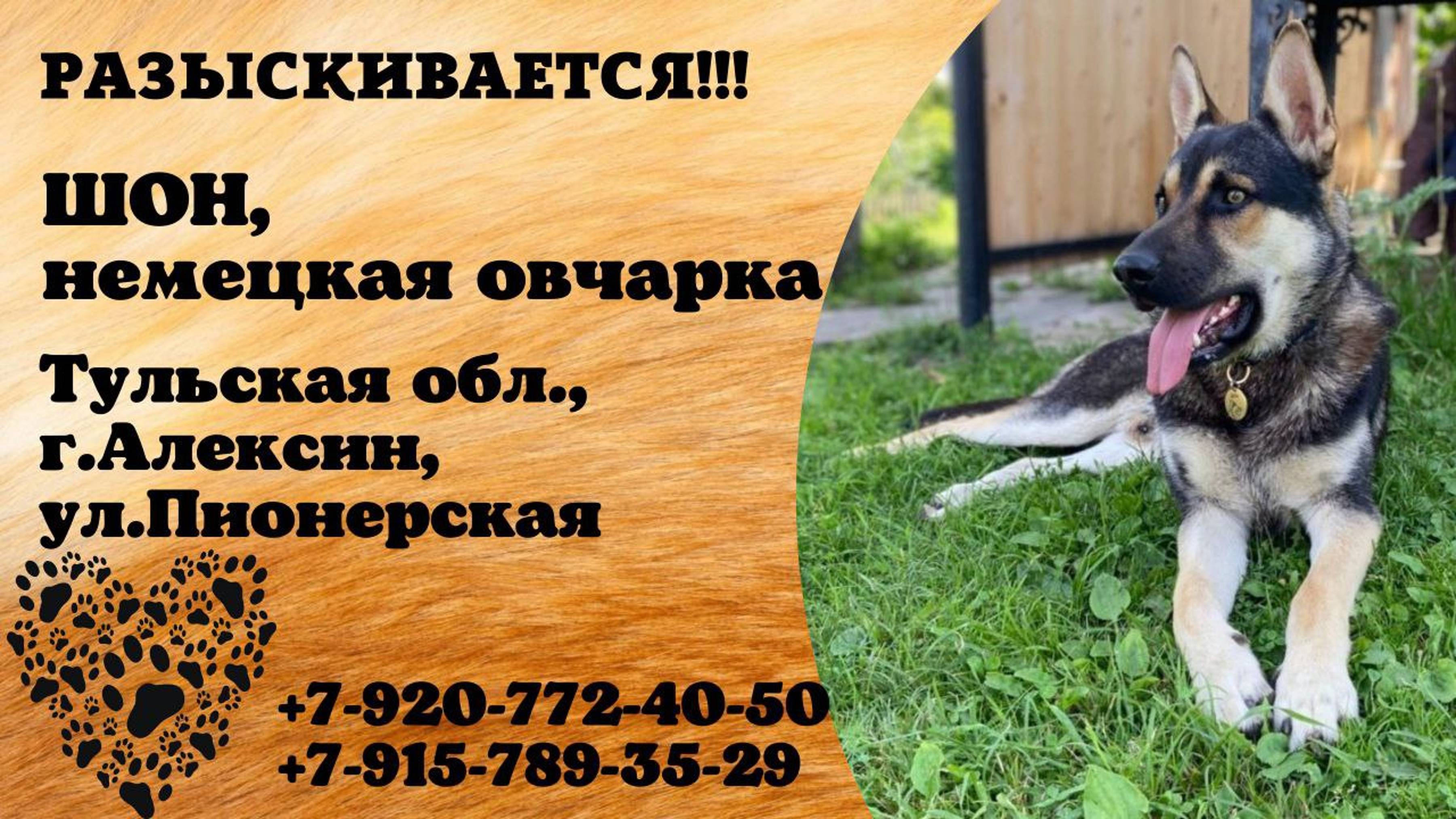 Пропала собака! ШОН. Немецкая овчарка. Тульская обл, г. Алексин