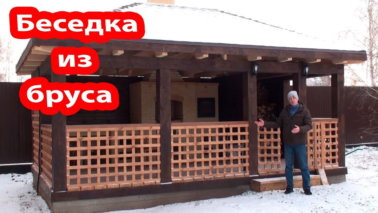 БЕСЕДКА из БРУСА 6х4! Кирпичный барбекю.