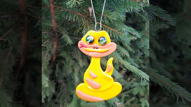 желтая змейка, стекло, фьюзинг