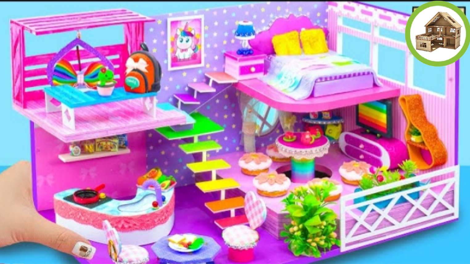 Фиолетовый миниатюрный домик в простейшем стиле для семьи из картона /284