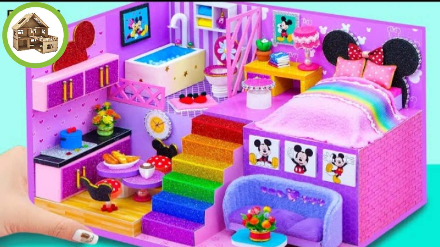 Фиолетовый миниатюрный домик Микки Мауса кузня со всеми удобствами из картона /232