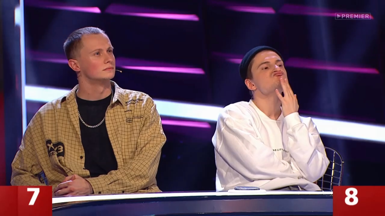 На экране появится очень большая картинка. В ней будет зашифровано все, что связанно с футбольными терминами. А что это за футбольные термины - угадывать предстоит гостям выпуска - бывшим участникам "Танцев" Герману Ромазанову и Кириллу Цыганову, а также Александру Кауфману и Тиме Белорусских. Кто даст большее количество ответов, тому и достанется целый балл.