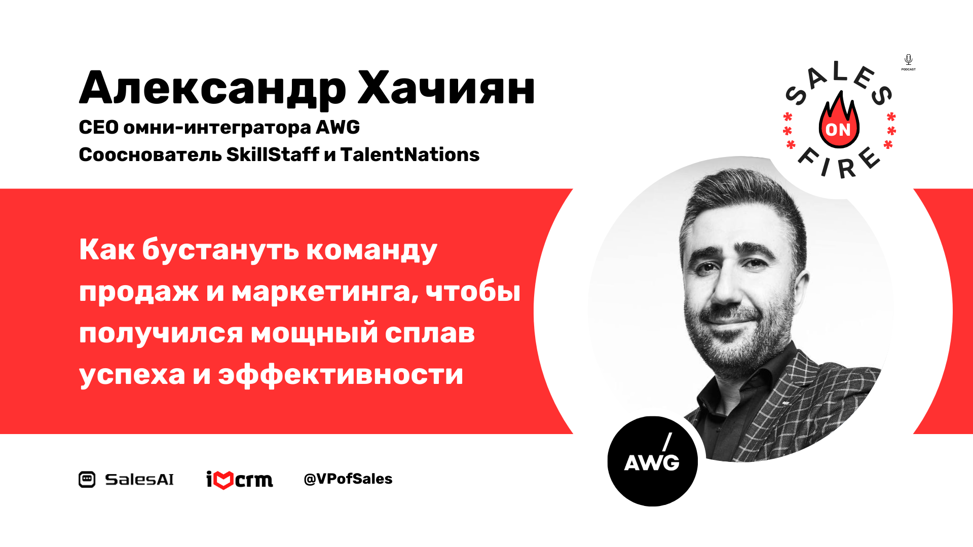 Как бустануть команду продаж и маркетинга, чтобы получить мощный успех / Александр Хачиян Как перестроить процесс и философию продаж, чтобы усилить результаты продаж на красном рынке заказной разработки. Как более эффективно продавать аутсорс. Как создать эффективную связку между маркетингом и продажами: о своих шрамах рассказывает опытный предприниматель Александр Хачиян. Александр Хачиян CEO омни-интегратора AWG (https://bit.ly/3L7Hnrn) и сооснователь SkillStaff (https://bit.ly/47YsTUx) и TalentNations (https://bit.ly/44CzZLE), B2B маркетплейсы ИТ-аутстаффинга. У Александра более 15 лет опыта работы в e-commerce, включая менеджмент и запуск крупных онлайн-проектов. Окончил факультет прикладной математики и физики Московского Авиационного Института. Если вы посмотрите или послушаете этот выпуск подкаста, то узнаете про: 1. Как начать карьеру? 2. Как совершить карьерный поворот? 3. Какой момент самый удобный для начала своего бизнеса? 4. Что должно драйвить основателя? 5. Какие софт-скиллы необходимы основателю? 6. Что такое продажа на самом деле? 7. Что такое продуктовое управление? 8. Какие цели ставить перед командой? 9. Как меняется роль продавца в проектных продажах? 10. Кто на самом деле продает? 11. За что на самом деле платит заказчик? и тд. ---- Ведущие подкаста: Роман Магдаленко и Антон Борода. Партнеры выпуска: * SalesAI — Автоматическая квалификация лида, контроль качества звонков и заполнение CRM с помощью ИИ. https://salesai.ru * VP of Sales — Канал про Data Driven продажи. https://t.me/vpofsales * #IloveCRM — Все, что вы хотели знать про CRM, но стеснялись спросить. https://t.me/ilovecrm ---- #Podcast #Подкаст #ПродаживОгне #SalesOnFire #Sales #Marketing #Продажи #Маркетинг #b2b #лидерство