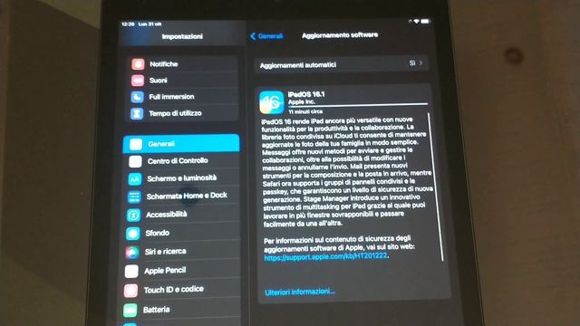 Aggiornamento iPadOS 16.1 | iPad 9ª Gen.