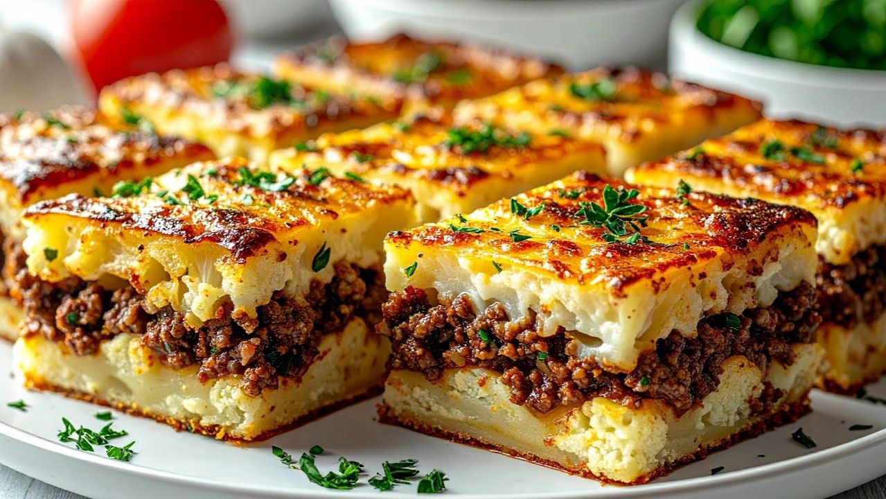 Время приготовления: 60–70 минут. Порции: 4–6. Ингредиенты: цветная капуста — 1 кочан (около 800–1000 г); фарш мясной — 500 г; яйца — 3 шт.; творог (или кварк) — 200 г; сыр моцарелла — 200 г; петрушка — 1 пучок; лук репчатый — 1 шт. (среднего размера); чеснок — 2 зубчика; помидор — 1 шт.; томатная паста — 1 ст. л.; сливочное масло — 40 г; мука — 1,5 ст. л.; молоко — 300 мл; мускатный орех — щепотка; соль — по вкусу; чёрный перец (молотый) — по вкусу; сушёная паприка — по вкусу; сушёный орегано — по вкусу. Пошаговый рецепт: Подготовка цветной капусты: Разделите капусту на соцветия. Отварите в кипящей подсолённой воде 5–7 минут до полуготовности. Слейте воду, дайте остыть, затем измельчите в блендере или разомните толкушкой до состояния «пюре». Приготовление фарша: Лук и чеснок очистите, мелко нарежьте. На сковороде растопите 20 г сливочного масла. Обжарьте лук и чеснок до прозрачности. Добавьте фарш, обжаривайте 5–7 минут до готовности. Вмешайте томатную пасту, помидор (нарезанный кубиками), соль, перец, паприку и орегано. Готовьте ещё 2–3 минуты, снимите с огня. Бешамель (соус): В чистой сковороде растопите оставшиеся 20 г масла. Всыпьте муку, обжарьте 1–2 минуты. Постепенно влейте молоко, постоянно помешивая. Варите до загустения (3–5 минут), добавьте мускатный орех, соль и перец по вкусу. Сборка пирога: Смажьте форму маслом, присыпьте мукой. Выложите слой цветной капусты, слегка утрамбуйте. Сверху распределите фарш. Залейте соусом бешамель. Взбейте яйца с творогом, равномерно покройте пирог. Посыпьте тёртой моцареллой. Запекание: Разогрейте духовку до 180 ℃. Запекайте 25–30 минут до золотистой корочки. За 5 минут до готовности посыпьте рубленой петрушкой. Подача: Дайте пирогу постоять 5–10 минут после духовки. Разрежьте на порции, подавайте горячим. Советы для идеального результата: Цветная капуста: можно использовать замороженную (предварительно разморозить и отжать лишнюю влагу). Фарш: подойдёт говяжий, свиной или смешанный. Для лёгкого варианта — куриный или индюшиный. Сыр: вместо моцареллы можно взять гауду или эмменталь. Соус: если бешамель получился слишком густым, добавьте немного молока. Зелень: свежую петрушку можно заменить укропом или базиликом. Подача: отлично сочетается с лёгким салатом из огурцов и помидоров. Хранение: пирог хранится в холодильнике до 2 дней. Разогревайте в духовке или микроволновке. Приятного аппетита!