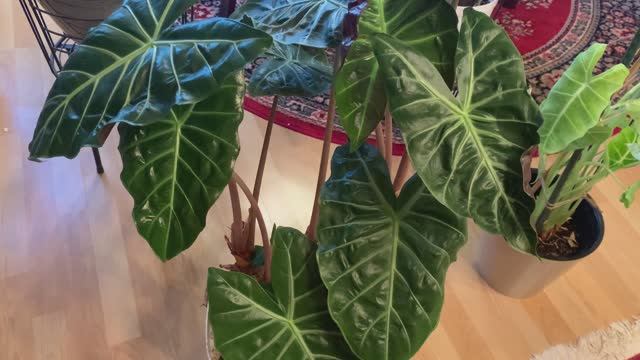 Сравниваю две Алоказии, которые выращиваю в квартире.