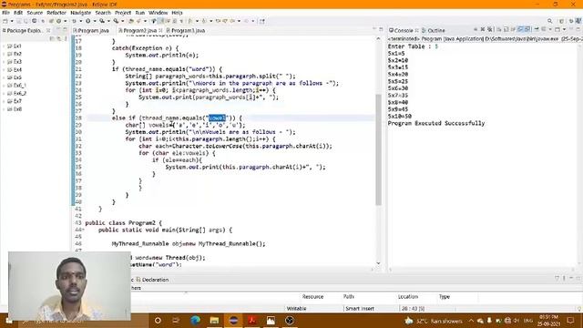 In this video I have covered the following question, 1. Write a program that create a thread and display the line of multiplication table of number 5 for every 3 seconds. 2. Create a java program to read a paragraph of text data and create 2 threads namely word, vowel and do the following operations with 2 seconds’ delay. A. word thread display each word one by one. B. vowel thread prints each vowel one by one 3. Create a java program to read 10 numbers and store in an array create 3 threads namely even, odd and total do the following operations with 2 seconds’ delay A. even thread display all the even numbers in the array. B. odd thread display all the odd numbers in the array. C. total thread display sum of all numbers in the array.