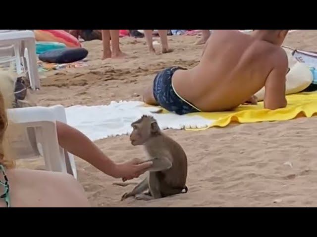 ГУЛЯЮЩАЯ ПО ПЛЯЖУ ОБЕЗЬЯНА ШОКИРОВАЛА ОТДЫХАЮЩИХ В ГЕЛЕНДЖИКЕ