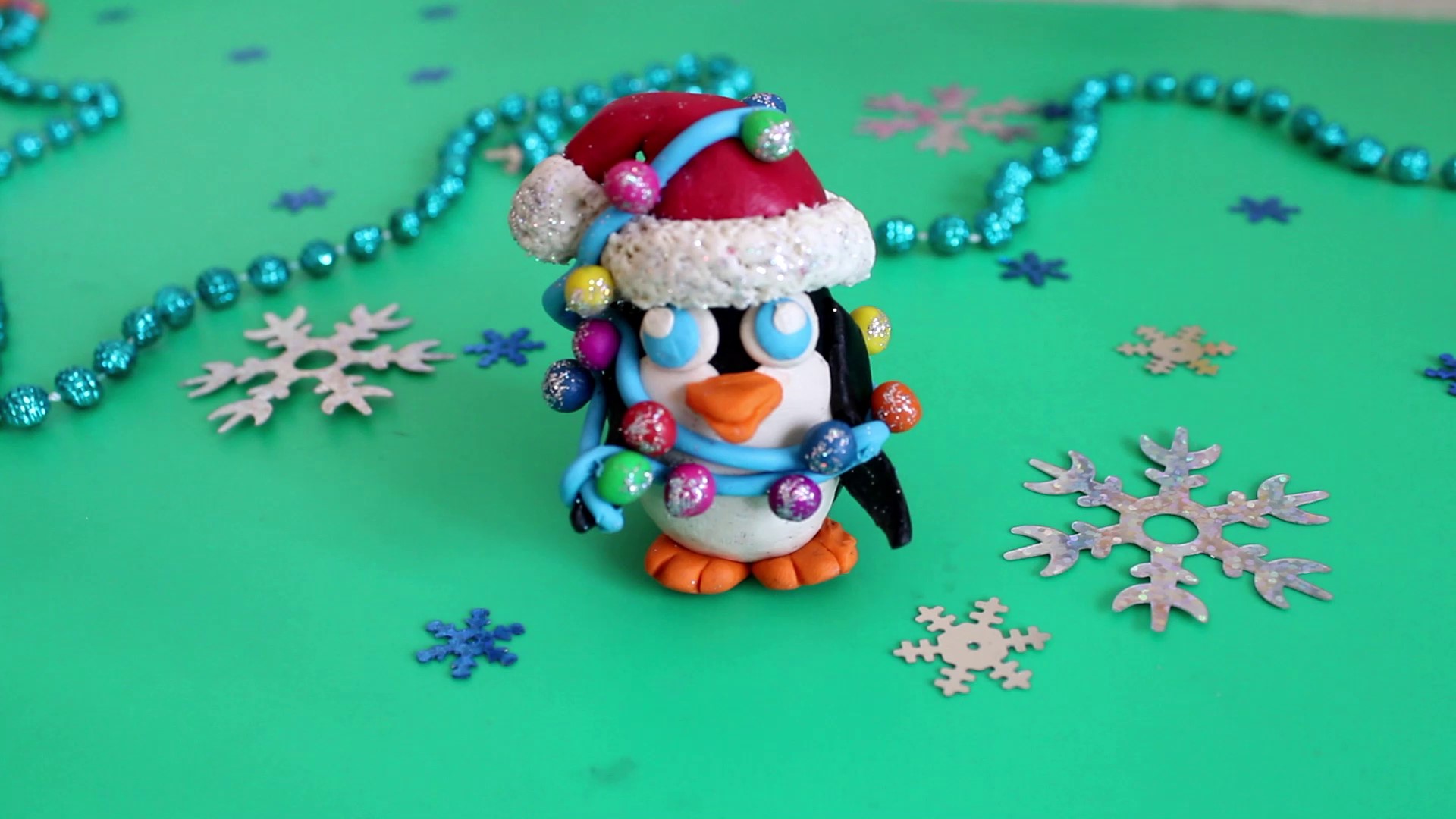 Новогодний пингвин из пластилина. Лепим пингвина с гирляндой.