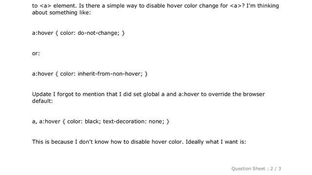 HTML : Disable HTML link hover color