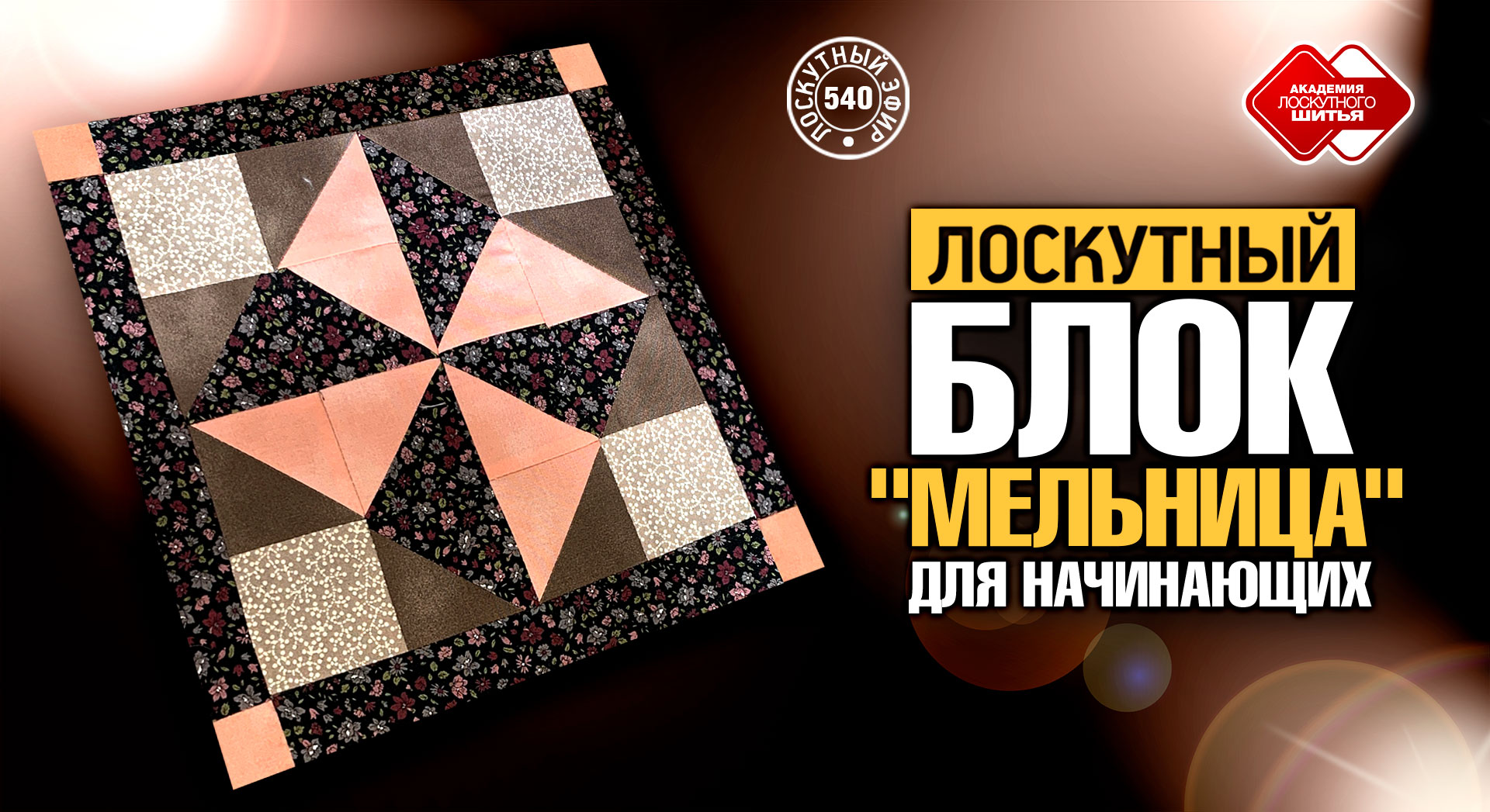 Лоскутный эфир 540. Блок "Мельница" для начинающих. Способ "Диагональных квадратов"