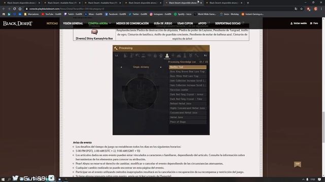 Pociones infinitas: HP: https://bdocodex.com/es/item/40712/ MP: https://bdocodex.com/es/item/40713/ Notas del parche: https://www.console.playblackdesert.com/News/Detail?boardNo=3972&category=0 ========================================= Puedes ser Miembro de mi canal desde aqui: https://www.youtube.com/channel/UC9-oixn0gg8cUNmNBJ1MiKA/join ========================================= ?Discord ?Black Desert NEW: https://discord.gg/eNuqgKp ========================================= ?️Videos ?Twitch: https://www.twitch.tv/guti89i ?YouTube: http://www.youtube.com/c/Guti89 ?Mixer: https://mixer.com/Guti89i ========================================= ?Social ?Twitter: https://twitter.com/Guti89i ?Instagram: https://www.instagram.com/guti89i/?hl=es ?Donaciones: https://paypal.me/guti89hd?locale.x=es_ES ?Juegos + baratos: https://www.instant-gaming.com/igr/guti89i/ ========================================= •°•°•°•°•°•°•°•°•°•°•°•°•°•°•°•°•°•°•°•°•°•°•°•°•°•°•°•°•°•°•°• ?️Mi PC ?CPU: AMD Ryzen 5 2600 3.9Ghz Max Boost, 3,4Ghz Base+19MB ?GPU: AMD SAPPHIRE VGA RX580 Nitro+ OC 4GB Backplate GDDR5 1411 MHz ?RAM: Corsair Vengeance LPX 2x8 GB DDR4 3000 MHz C15 ?PLACA BASE: AMD MSI B450-A PRO ?SSD/HDD: Kingston SSD A400 240GB // Samsung 860 EVO 1TB // WD Blue 1TB ?FUENTE: Corsair VS 650W (PFC Activo, 80 Plus) ?TORRE: NOX Hummer MC Blanca led ?MONITORES: AOC C27G1 Monitor Curvo 27” FHD // HP OMEN 25 FHD ?PERIFÉRICOS: Teclado Logitech G105 // Raton Logitech G403 // Cascos Logitech G430 // Mando XboxOne Special Edición Sport White