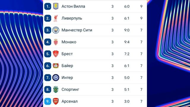 Лига Чемпионов 2024-2025 общий этап 3й-тур и таблица #football #championsleague #лигачемпионов