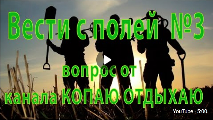 Вести с полей от камрадов. Вопрос от канала КОПАЮ ОТДЫХАЮ. №3 КОПАЮ ОТДЫХАЮ - https://www.youtube.com/channel/UClNx-xPZNRZpWSSewOfCxjg #копатель #кладоискатель #гдекопатьсметаллоискателем ДОНАТ НА ПОДДЕРЖКУ КАНАЛА ДИВ КЛАДОИСКАТЕЛЬ - https://www.donationalerts.com/r/kladoiskateldiv