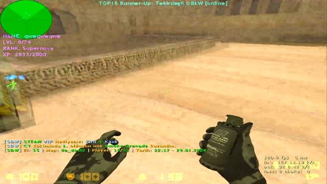 Valorant tarzı gibi çift zıplama var arkadaşlarını canlandırabiliyorsunuz paraşüt var daha ne olsun be ama gerçekten baya hoşuma gitmişti sizde bu swyı uğramak isterseniz konsola "connect cs6.csduragi.net" yazıp girmeniz yeterlidir. Herkese İyi Seyirler :) 800x600 dpi 800 sensitivity 1.2 m_rawinput 1 windows sens 6/20 Monitör 165hz ⚡ My Old Cfg: https://bit.ly/machinecfg ⚡ Discord Sunucumuza Katıl: https://discord.gg/BbCYcXpVQt ⚡ Steam Grubumuza Katıl: https://steamcommunity.com/groups/MachiNeArmy ⚡ Twitch Kanalım: https://www.twitch.tv/machinne_player ⚡ THİS İS M4CH1NEST4R!⚡ System : -- MotherBoard : Gigabyte A520M-H AMD A520 SOKET AM4 DDR4 5100(OC) -- GPU : Gainward Geforce RTX 3060TI GHOST 8GB GDDR6 256 BIT -- CPU : AMD Ryzen 5 5600 3.5GHZ 32MB -- CPU FAN : COOLER MASTER HYPER 212 DUAL -- HHD : 1TB SAMSUNG -- SSD : MLD 500GB M300 3300/3100 MB NVME GEN 3X4 M.2 SSD -- RAM : GSKILL 16GB (2X8GB) RIPJAWS V SIYAH DDR4-3600MHZ -- POWER : 750Watt -- Monitör : Lenovo G24-20 23.8" 165hz 0.5ms -- Mouse : Razer Deathadder V2 Mini Video ve Render Programs -- OBS [120FPS] -- Vegas Pro 17.0