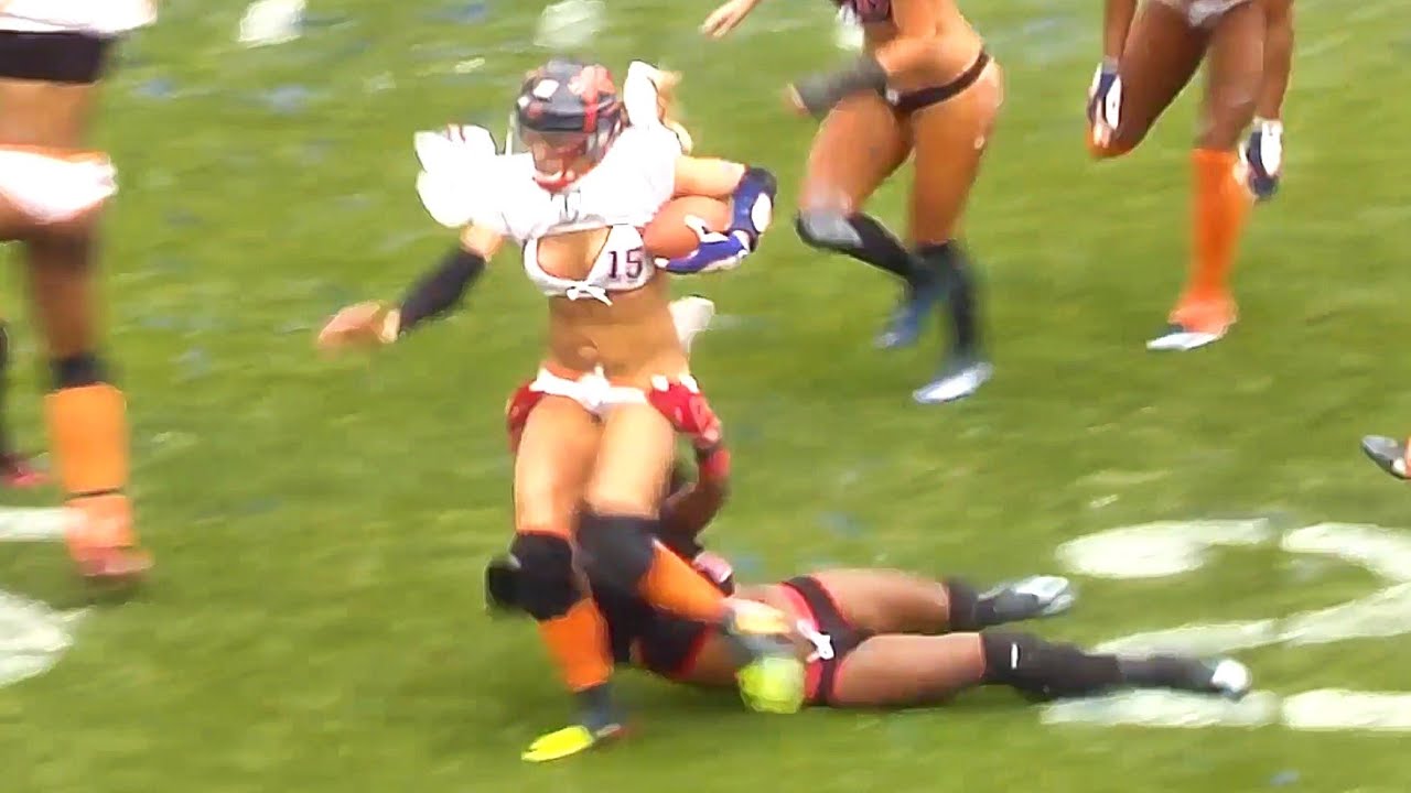 Женская лига американского футбола Лучшие моменты В 2004 году американский спортивный предприниматель Митчелл Мортаза основал Футбольную лигу нижнего белья Lingerie Football League, которая сейчас претендует на звание полноценной женской лиги по американскому футболу. Изначально проект планировался, как часть шоу в перерыве финального матча Американской национальной футбольной лиги Super Bowl, однако его популярность оказалась настолько велика, что сейчас матчи LFL легко собирают полные стадионы зрителей. Далее предлагаем поближе познакомиться с этим зрелищным женским видом спорта. Экипировка спортсменок выглядит так. Смотрите видео женский американский футбол без цензуры онлайн американский футбол в нижнем белье смотреть