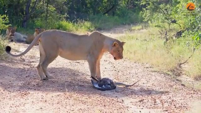Ядовитая змея и две львицы сошлись в схватке за орла