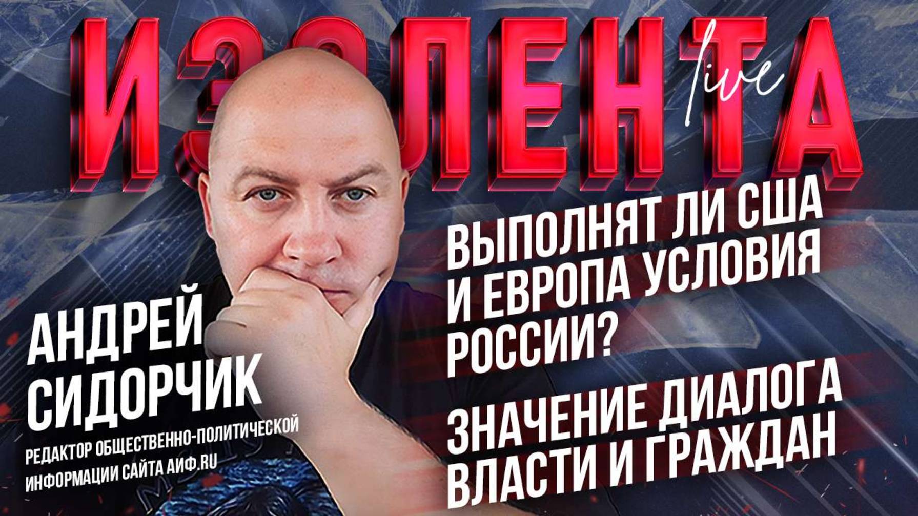 Андрей Сидорчик: https://t.me/sidorchik1976 Пётр Лидов: https://t.me/pvsgns Трофим Татаренков: https://t.me/NeBrigada Задонатить, участвовать в голосовании и задать вопрос можно тут: https://donate.stream/izolentalive. Нравятся наши выпуски? Подпишись на «Изолента+»: https://t.me/tribute/app?startapp=sr3 Изолента в Телегам https://t.me/izolentalive Изолента ВКонтакте https://vk.com/izolentalive Изолента в Одноклассниках: https://ok.ru/group/70000002758400 Кулинарный проект "Мужики на кухне": https://t.me/tribute/app?startapp=si76 Радио Sputnik: https://t.me/radio_sputnik «ИзоТОЛК» — это новый проект «ИзолентаLive» и «Изолента+»! Есть что сказать? Оставь заявку здесь: https://t.me/IzoTalkBot.