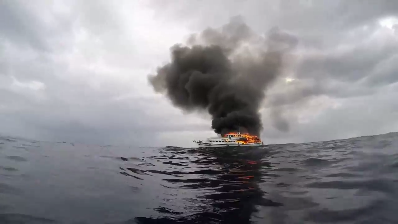 Российские туристы сняли на видео спасение с горящего катера в Таиланде