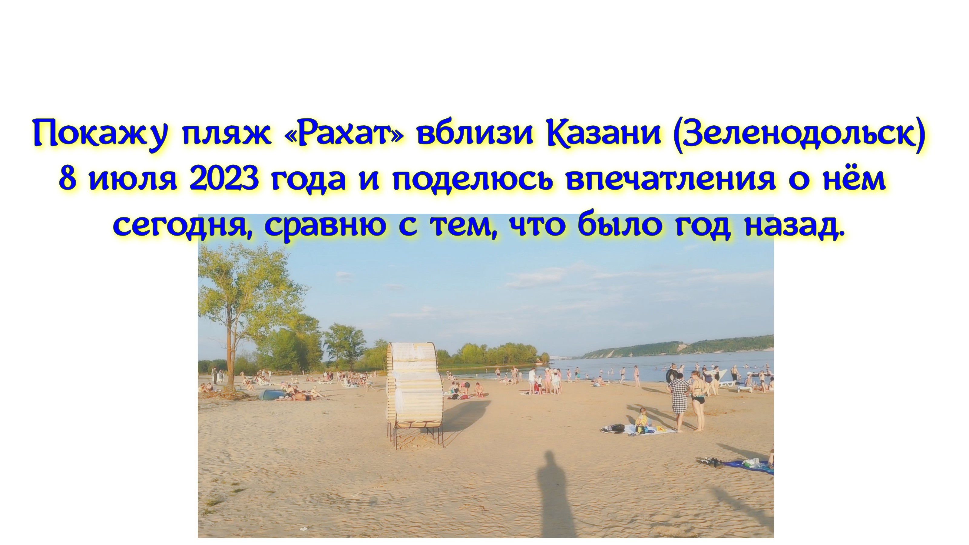 Покажу пляж «Рахат» вблизи Казани (Зеленодольск) 8 июля 2023 года и поделюсь впечатления о нём сегодня, сравню с тем, что было год назад.