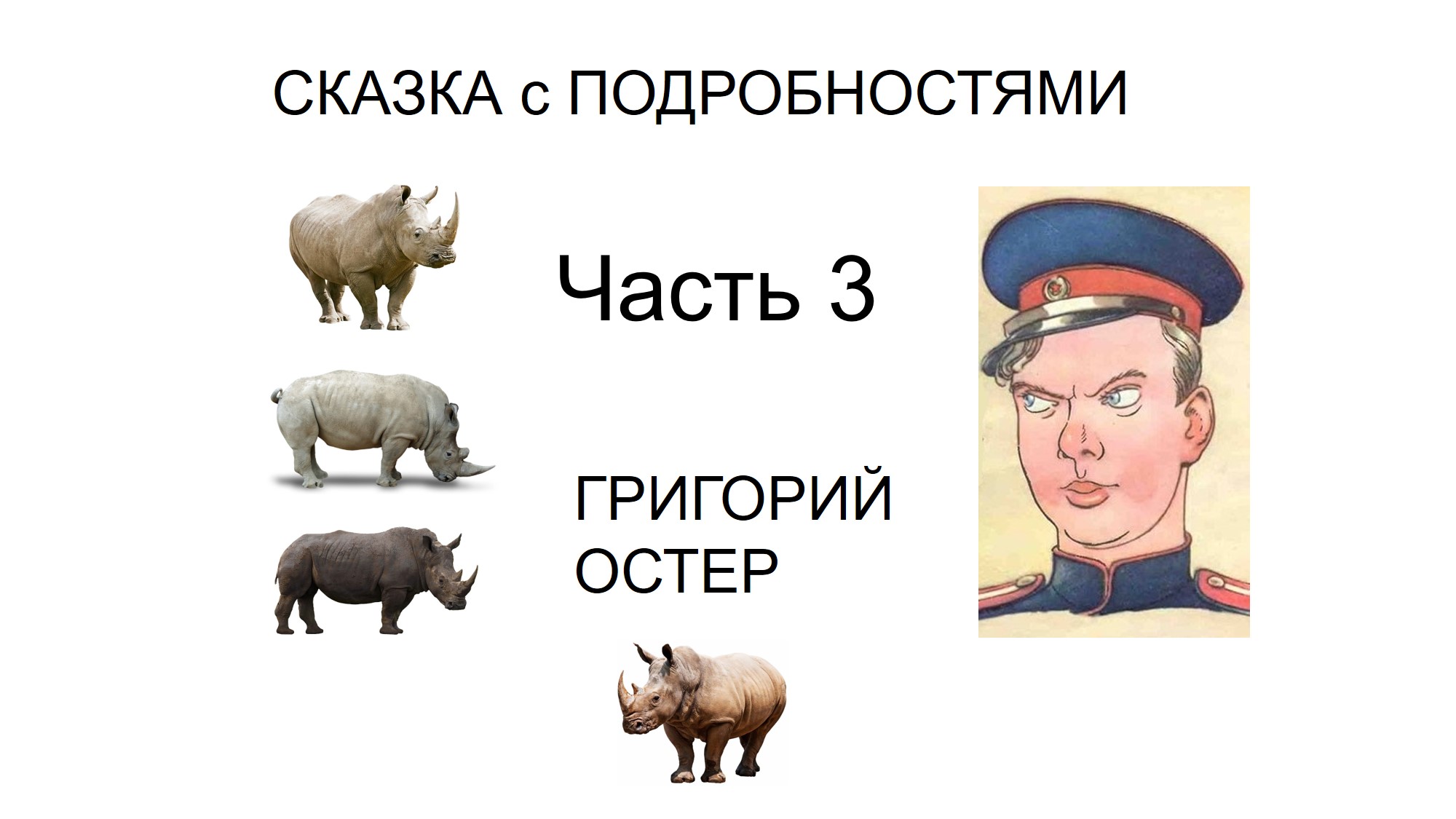 В третьей части мы знакомимся с 3+1 носорогами (почему так - смотрите и слушайте!), вновь слышим про бабушку Марью, ведь это именно она кормит носорогов капустой в зоопарке! ??? ?Знакомимся с продавцом, который любит уходить со совей работы, а также братом Петей и сестрой Катей! Также вы узнаете что люди любят писать в жалобных - если их об этом попросить?? Приглашаю уже всех послушать продолжение этой удивительной "сказки"? Как вы помните, подробности в этом рассказе занимают ключевую роль! По сути, без ?ПОТРЕБНОСТИ в ПОДРОБНОСТЯХ, не было бы и этого рассказа? Ссылка на первую часть https://home.strannik-j.org/video/363a27588a627f1d6a5cbcaae75beb7a/ Ссылка на вторую часть https://home.strannik-j.org/video/7eeb03223821afbf6fda7bdec9861ba8/ Обещаю, что автор этого уникального произведения, Григорий Остер с каждой новой главой будет погружать читателей/слушателей в удивительно смешной мир своего творчества ?? ?☕????Устраивайтесь поудобней, зовите всех детей и взрослых! ?Подписывайтесь на канал Мишкина книжка! Читайте и слушайте с удовольствием? ?♂️ Поддержать автора вы можете здесь: https://yoomoney.ru/to/4100118103051691 #григорий_остер #остер #григорий_остер_сказка_с_подробностями #сказка_с_подробностями #григорий_остер_детские_рассказы #детские_рассказы_григорий_остер #смешные_рассказы_григорий_остер #григорий_остер_автор #григорий_остер_детский_автор #григорий_остер_рассказы #рассказы_григорий_остер #рассказы_и_стихи_григорий_остер #рассказы_остер #рассказы_остер #смешные_рассказы_остер #рассказы_для_детей_остер #остер_стихи_и_рассказы #аудиокнига_остер #аудиокнига_григорий_остер #остер_аудиокнига #григорий_остер_аудиокнига #остер_рассказы_слушать #детские_сказки #детские_рассказы #развитие_детей #чтение_для_детей #детские_каналы #каналы_для_детей #книги_для_детей #читаем_с_детьми #отцы_и_дети #читаем_вместе #аудиокниги #аудио_книга #мишкина_книжка #забавные_истории #смешные_рассказы #лучший_канал_детей_и_родителей #сказки #рассказы #советские_рассказы #советские_авторы #советские_сказки