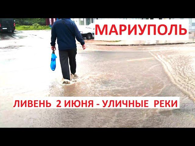 Мариуполь. Ливень - машины и люди плывут по уличным рекам. Левый берег 02.06.2021