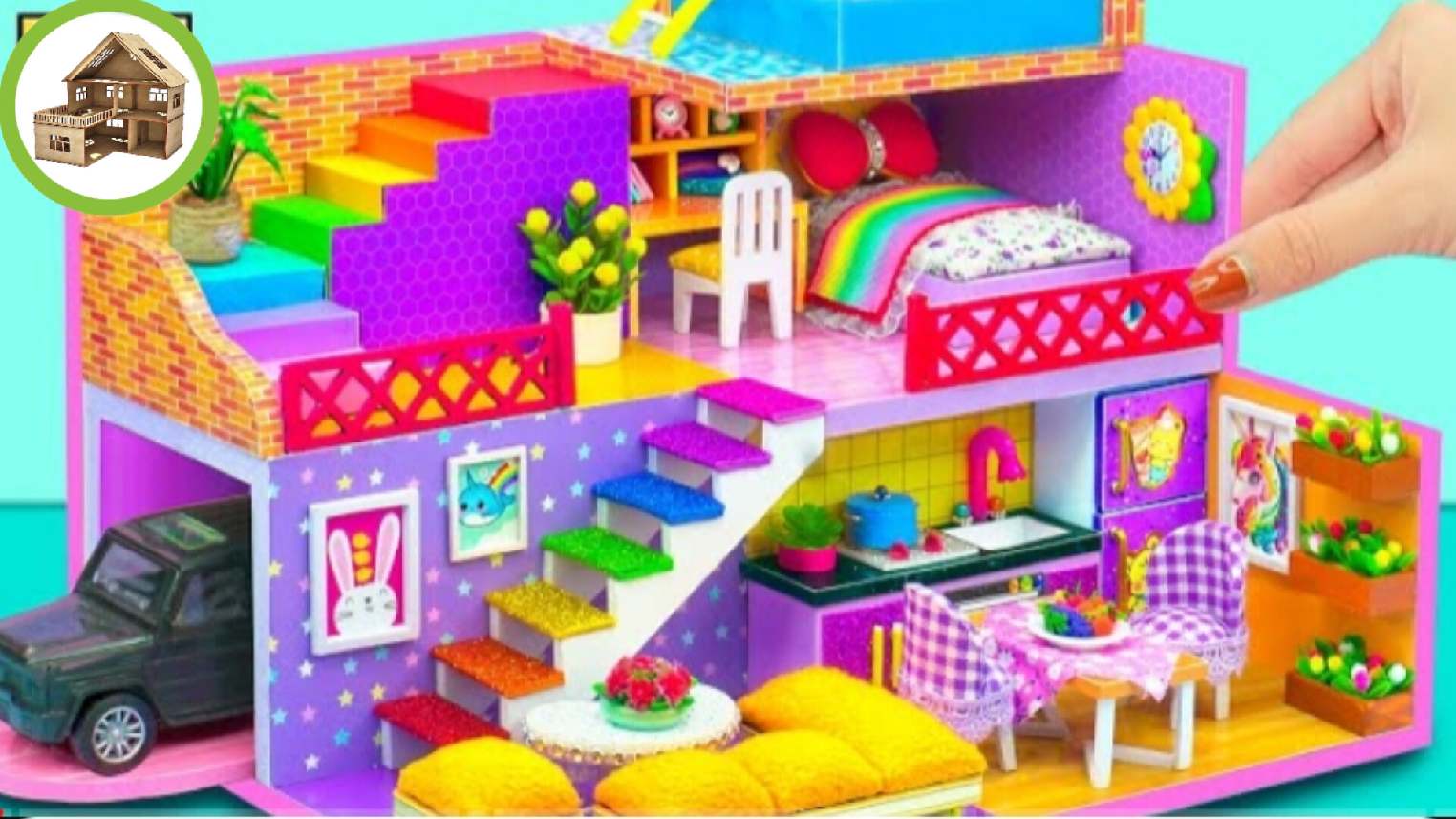 Постройте 2-этажную фиолетовую виллу с 4 комнатами и пейзажным бассейном из картона | diy /123