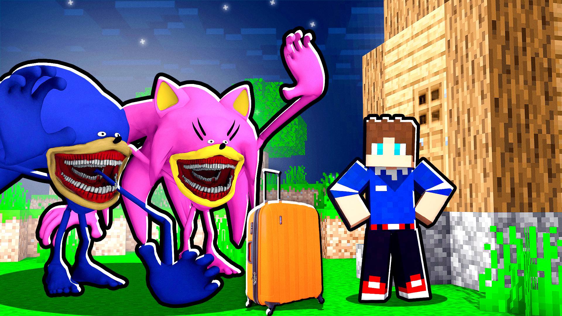 СЕМЬЯ МОНСТР ШИН СОНИК ПРИЕХАЛА КО МНЕ В ГОСТИ В МАЙНКРАФТ 100% ТРОЛЛИНГ МУЛЬТИК SONIC TAPES