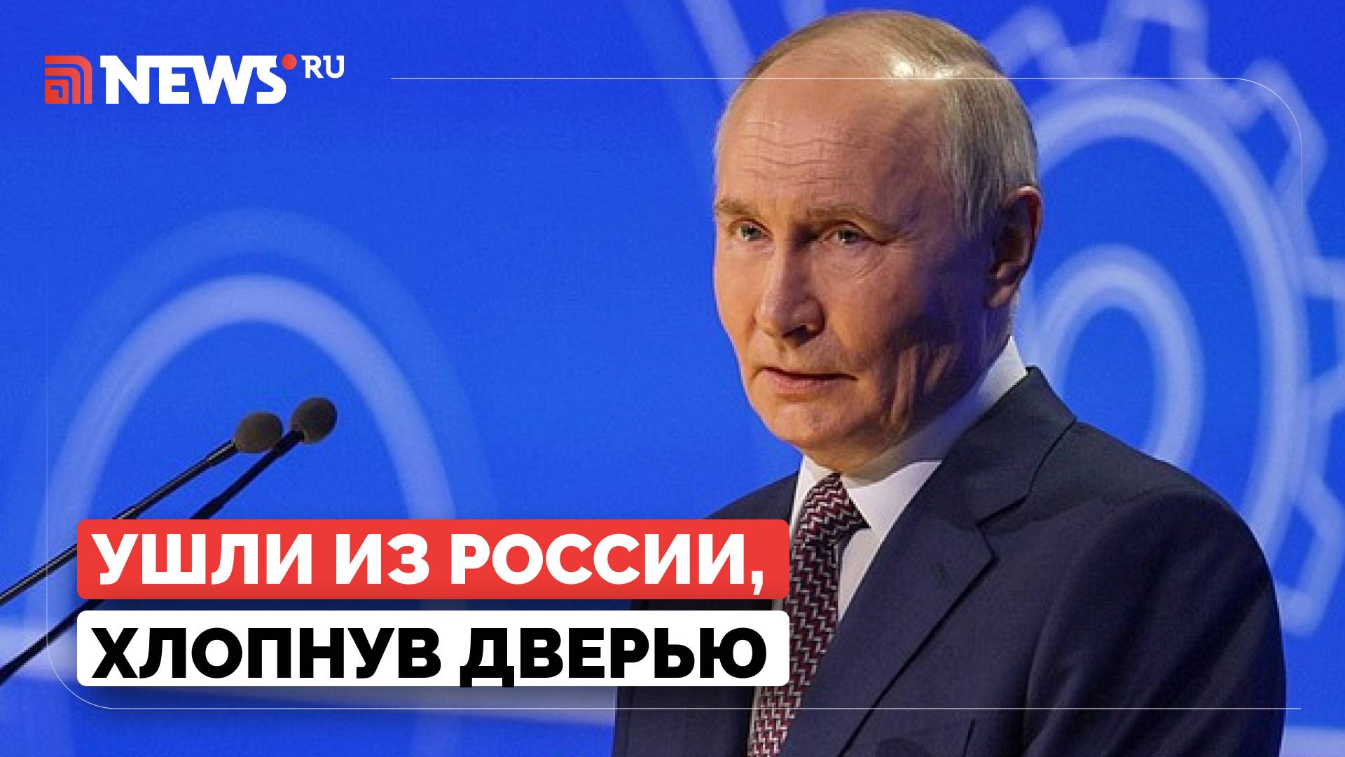 Владимир Путин, выступая на съезде Российского союза промышленников и предпринимателей, поручил правительству внимательно следить за сделками тех компаний, которые до этого «хлопали дверью», уходя с российского рынка. Подписывайтесь на наши соцсети! RuTube https://home.strannik-j.org/u/NEWSru/ Дзен https://dzen.ru/news.ru ВКонтакте https://vk.com/nws_ru Telegram https://t.me/nwsru Одноклассники https://ok.ru/group/54749517447331 YouTube https://www.youtube.com/@NEWSRuvideo