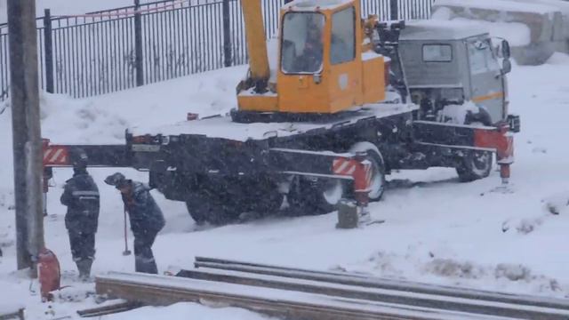Сварщики и автокран устанавливают шпунт на стройке в снегопад зимой. Мы на Ютубе - https://www.youtube.com/channel/UC58ccmyTCVWOA0gxfKguqDw