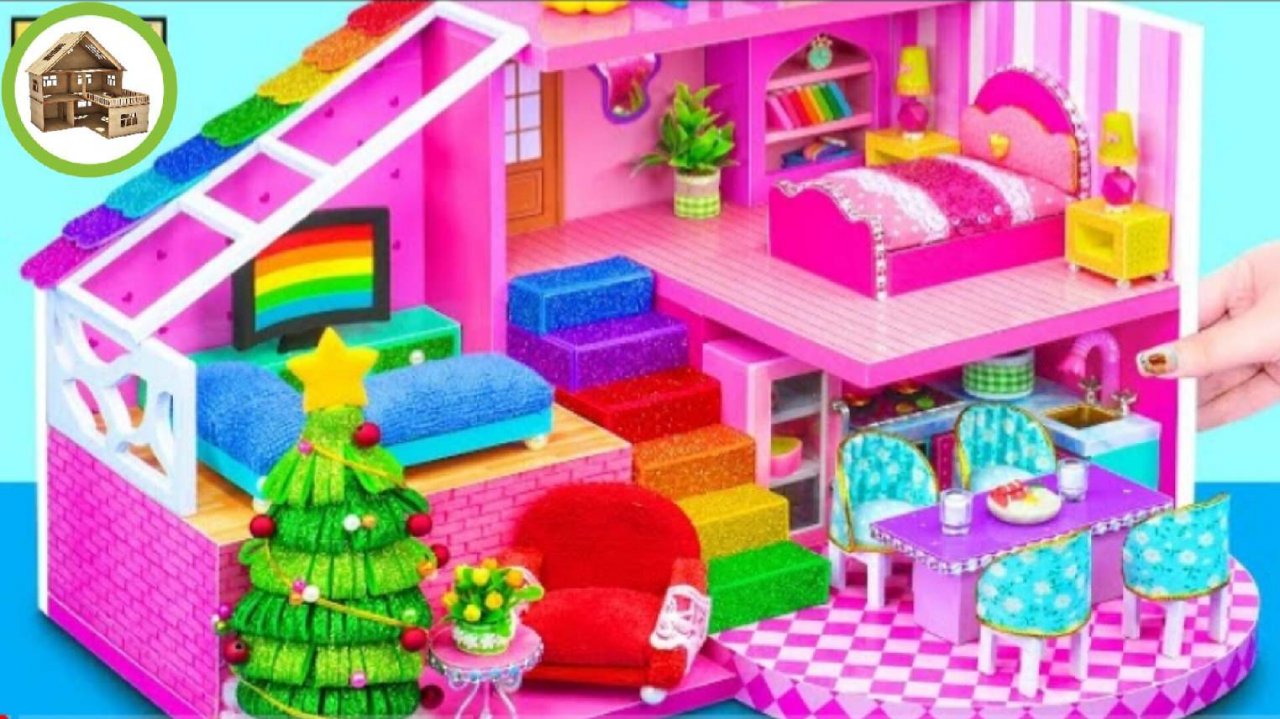 Миниатюрный розовый домик с потрясающими комнатами и кухней доя всей семьи из картона /170