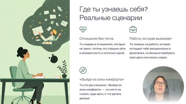 Страх перемен держит нас в токсичных отношениях и на ненавистной работе. Но что, если есть способ вырваться из этой ловушки? В этом видео вы узнаете: - Почему наш мозг сопротивляется изменениям - Как перестать бояться неизвестности - Пошаговый план выхода из зоны комфорта - Реальные сценарии преодоления страха Подписывайтесь на канал — впереди ещё много полезного контента о саморазвитии и психологии #страхперемен #зонакомфорта #психология #саморазвитие #изменениявжизни #отношения #карьера Важно: Видео создано для тех, кто готов честно посмотреть в лицо своим страхам и сделать первый шаг к изменениям. Вы не одни в своей борьбе — я рядом, чтобы поддержать вас.