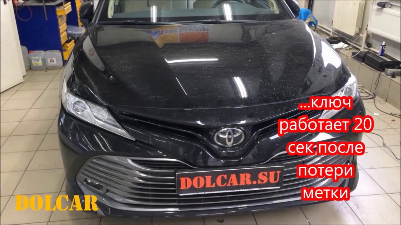 Установка сигнализации с автозапуском на Тоета Камри, защита штатного ключа с Keyless от удочки