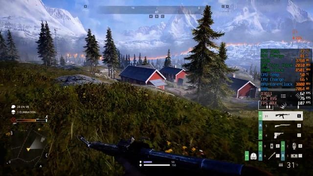 Framerate 1080p : Battlefield V Case - RebornLeague Balkhog PSU - Corsair Builder Series VS550 80PLUS V2 CM - Gigabyte B450M-DS3H CPU - Ryzen 5 2600 @3.8Ghz on All Core Cooler - Arctic Freezer 33 eSports ONE - Red GPU - Gigabyte GeForce GTX 1660 OC 6G RAM - Corsair Vengeance LPX Series Low Profile 8 Go DDR4 3000 MHz CL16 SSD - Crucial MX500 1To M.2 Captured with NVIDIA GeForce Experience : 1080P 60 FPS / 50 Mbps