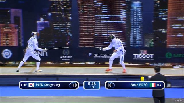 2018 387 M E Individual Doha QAT GP Semifinal 01 podium PIZZO ITA vs PARK KOR