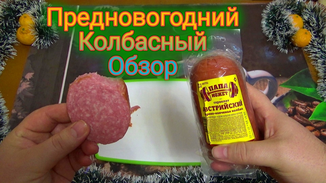 ПРЕДНОВОГОДНИЙ КОЛБАСНЫЙ ОБЗОР,колбаса варено-копченая,сервелат австрийский,производитель ПАПА МОЖЕТ