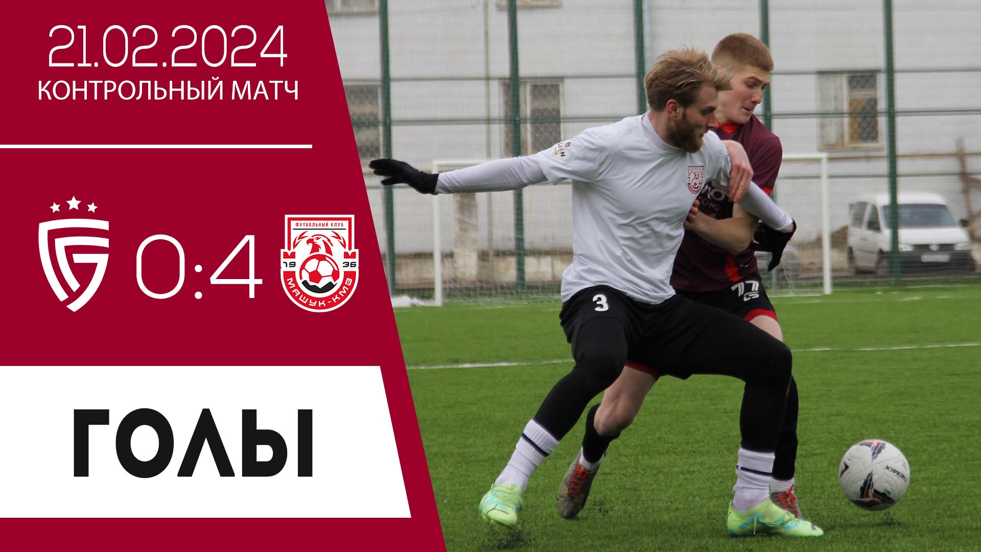 Голы: Суанов, 41 (0:1); Григорян, 45+ (0:2, с пен.); Тлехугов, 77 (0:3); Иванов, 87 (0:4) Удаление: Дмитрий Боровиков, 86. Контрольный матч. 21 февраля 2024 г. г. Пятигорск.