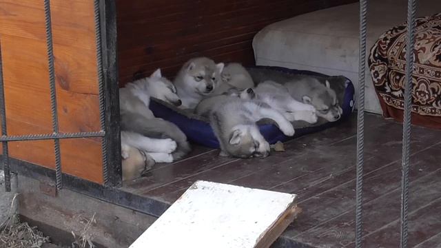 Щенки Хаски перый день в вольере :)