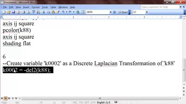 Just the beggining of a random research. With Matlab you can go further and use this kind of results to run some cool simulations. Work by: Le Kny Video by: Le KnY Music by: Le KnY Code: 1 --Import saved "goopic.jpeg" 2 --import goopic to workspace goopic 3--Create variable 'k99' with same size wich converts imported image 'goopic' to *unit8* format k99 = goopic(1:721,1:1280) 4--Create variable 'k88' wich converts created 'k99' *unit8* format to *double* format k88 = double(k99) 5 --Trying to get a better view contour(k88,15) colormap(copper) axis ij square pcolor(k88) axis ij square shading flat k0002 = -del2(k88); pcolor(k0002) axis ij square shading flat surf(k88,k0002); axis('ij','tight') shading('flat') view(-20,75) Cheers